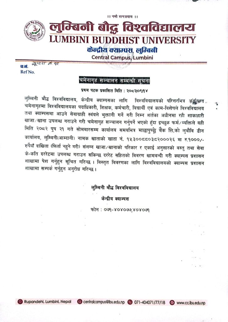चमेनागृह सञ्चालन सम्बन्धी सूचना ।