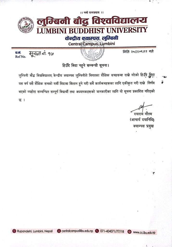 हिउँदे विदा नहुने सम्बन्धी सूचना ।